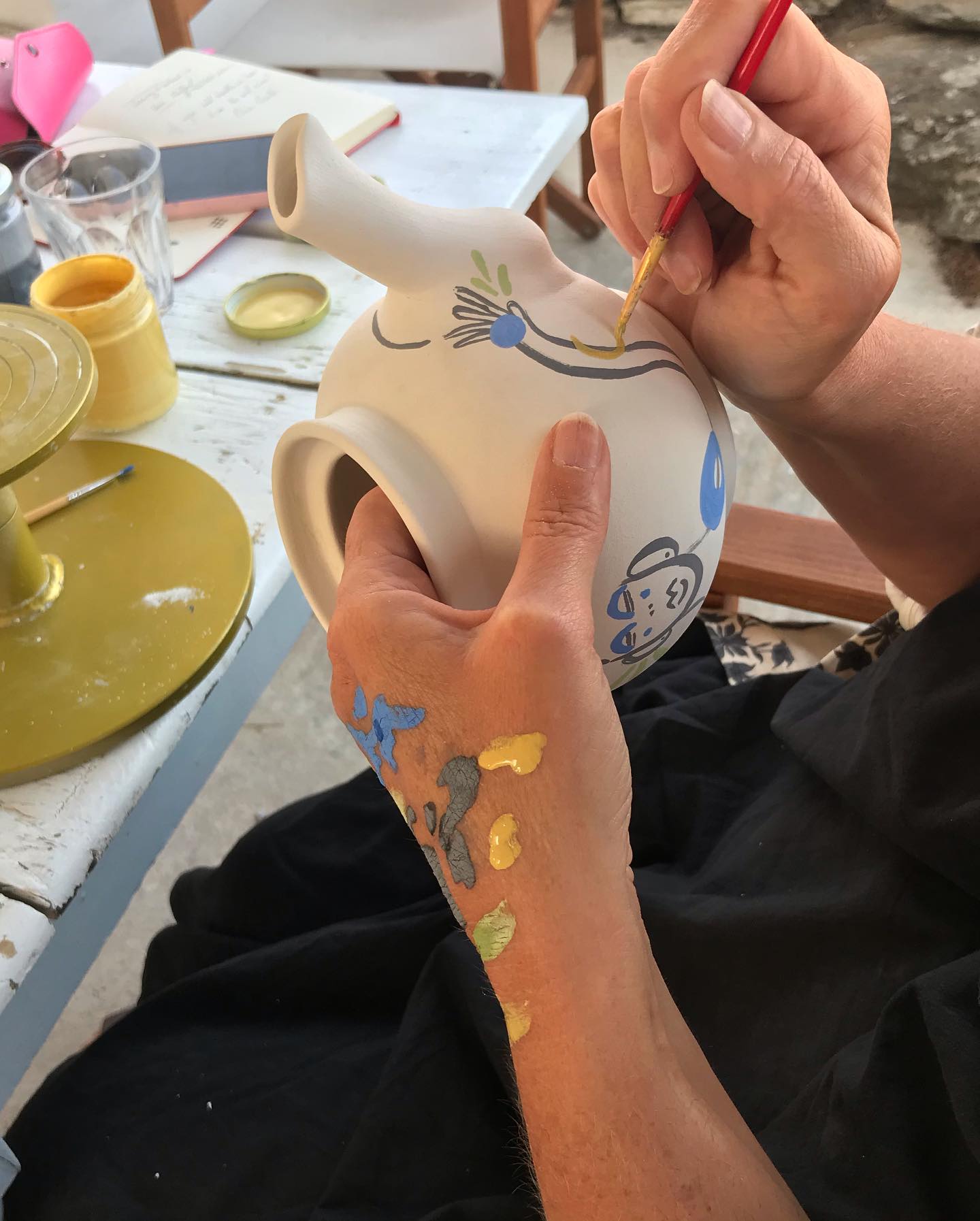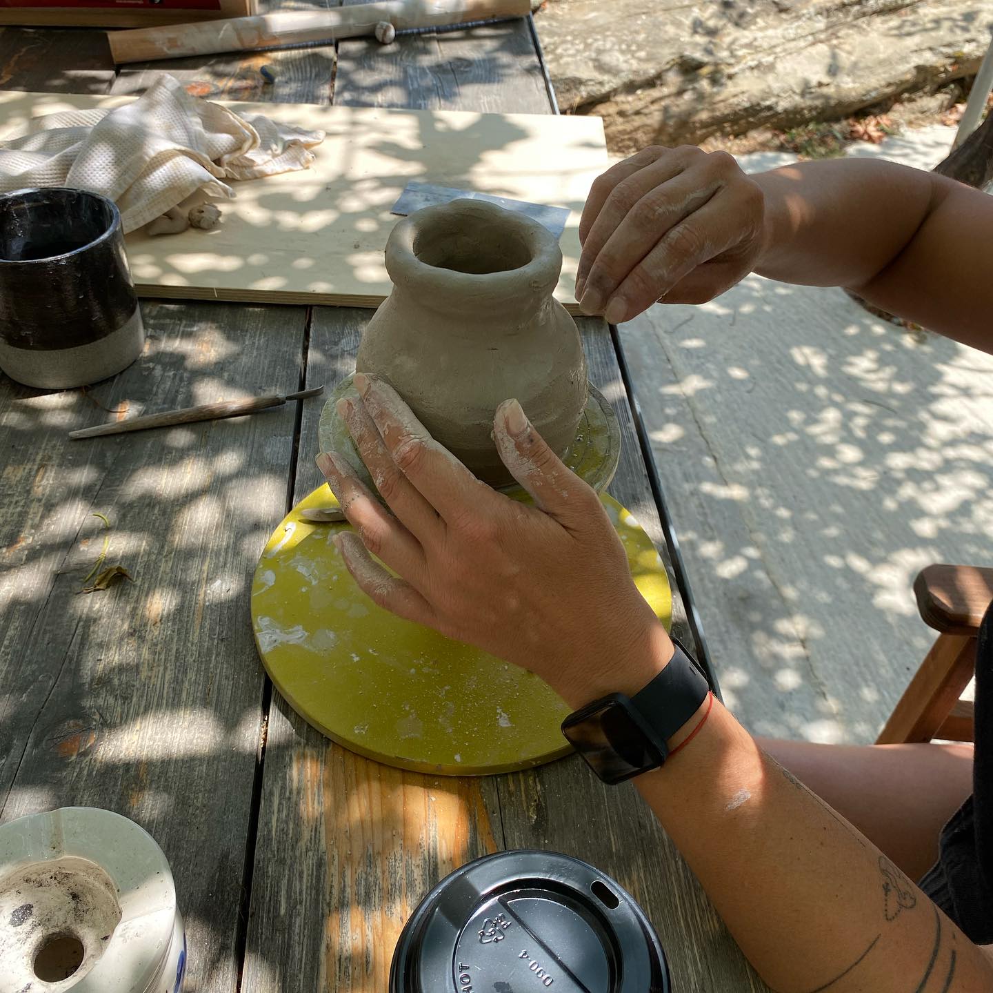 Στο τραπέζι, κομμάτια από πηλό περιμένουν να γίνουν κάτι — ένα φλιτζάνι, ένα πιάτο, μια ιστορία… Τους δίνεις σχήμα με τα χέρια σου και σε λίγο νιώθεις τη γη της Σύρου να γίνεται κομμάτι της δικής σου δημιουργίας. Στο διάλειμμα, κάθεσαι με την ομάδα για να γευτείς τοπικά προιόντα. Και όταν αυτή η τελετουργία τελειώσει, ξέρεις πως αυτό που έφτιαξες και έζησες είναι ένα κομμάτι της Σύρου που παίρνεις μαζί σου, σαν καλά κρυμμένο μυστικό.